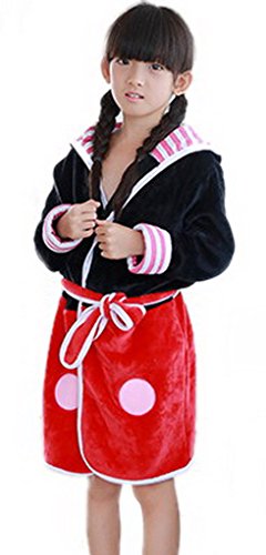(トヨベイ)Toyobuy バスローブ 可愛いネグリジェ 赤ちゃん パジャマ 子供用ガウン 長袖 寝巻き ナイトウェア ルームウエア 部屋着 キッズ 暖かい 柔らかい ネズミ ブラックとレッド(85)