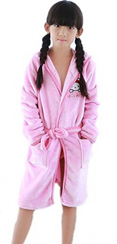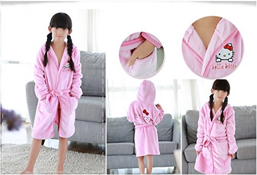 (トヨベイ)Toyobuy バスローブ 可愛いネグリジェ 赤ちゃん パジャマ 子供用ガウン 長袖 寝巻き ナイトウェア ルームウエア 部屋着 キッズ 暖かい 柔らかい 猫 ピンク(85)