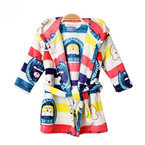 (トヨベイ)Toyobuy 赤ちゃん 可愛いネグリジェ パジャマ 浴衣バスローブ 長袖 寝巻き 子供用 ガウン ルームウエア ナイトウェア 部屋着 キッズ 暖かい 柔らかい 熊ちゃん カラフル90cm