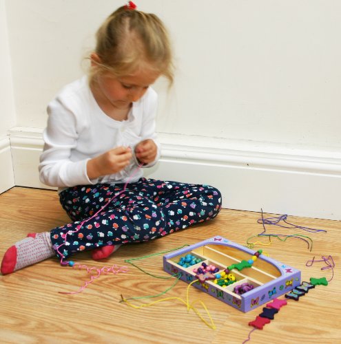 おもちゃの木製オックスフォード木製ビーズジュエリーボックス – 木製蝶とビーズ