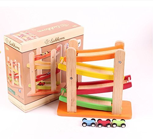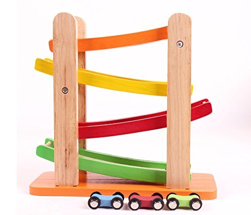カタカタ車が坂を駆け抜ける!! 直感的に遊べる木製おもちゃです。 ※誤飲の可能性のある乳児に与えないでください。