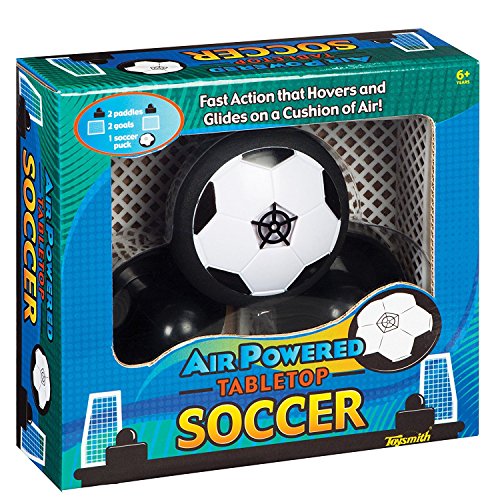 Take a break and enjoy a little game of Tabletop Soccer from Toysmith. Enjoy the classic game of air hockey, with a soccer theme. Play this tabletop soccer game on any smooth surface. Watch the soccer puck glide on a cushion of air. The set includes two p