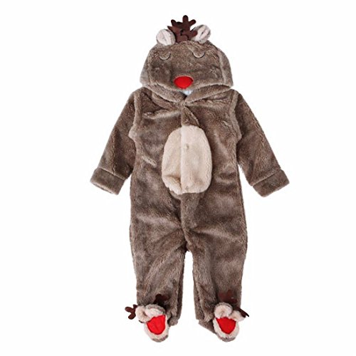 クリスマス 着ぐるみ 赤ちゃん ベビー服 カバーオール 新生児 フード付き トナカイ コスチューム もこもこ 可愛い 出産祝い (L, コーヒー色)