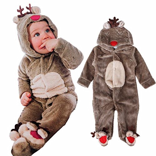 - 赤ちゃんの防寒、保温に、クリスマスシーズンにぴったりのトナカイ模様 着ぐるみ♪