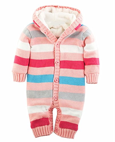 ベビー服 裏ボア ロンパース ニットカバーオール ボタン開き ボーダー柄 可愛い 暖かい 赤ちゃん 出産お祝い プレゼント (ピンク, S)