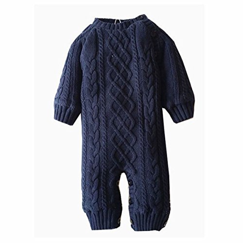 赤ちゃん ニット ロンパース 子供服 長袖 カバーオール ベビー服 パジャマ クライミング服 出産祝い プレゼント 防寒 (ネイビー, S)
