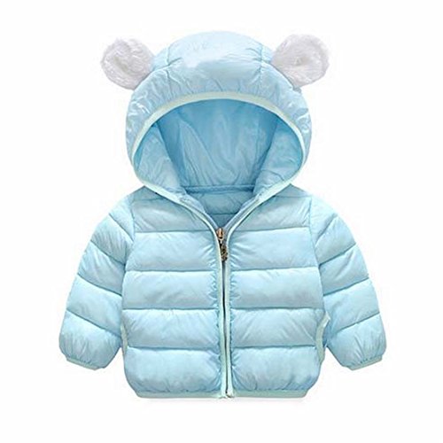 ダウンコート キッズ コート 子供服キッズ 中綿ジャケット 耳フード付き 赤ちゃん 男の子 女の子 可愛い ソフト 保温 暖かい お洒落 (70cm, スカイブルー)