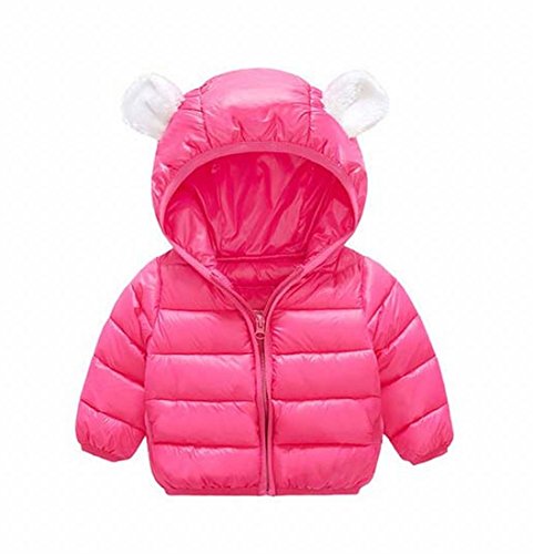 ダウンコート キッズ コート 子供服キッズ 中綿ジャケット 耳フード付き 赤ちゃん 男の子 女の子 可愛い ソフト 保温 暖かい お洒落 (70cm, ローズ)