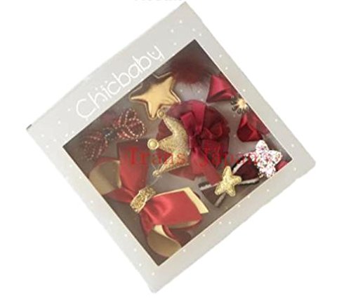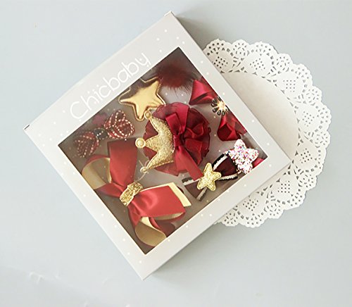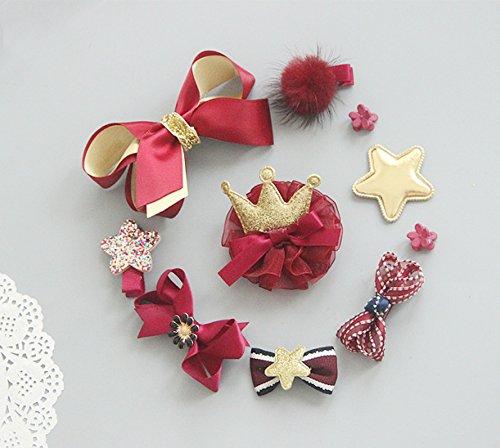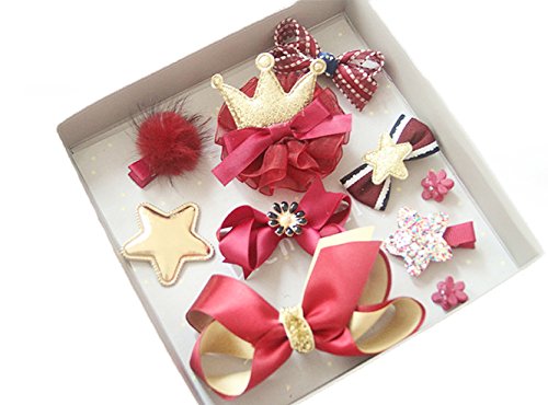 トランスジャパン ヘア クリップ 可愛い アクセサリー 髪飾り 前髪 クリップ 髪留め10点セット (04.レッド王冠リボン箱付き)