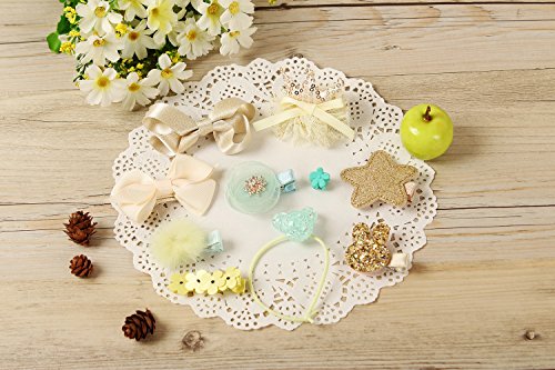 ヘア クリップ 可愛い アクセサリー 髪飾り 前髪 髪留め 10点セット (11.ライトグリーン王冠リボン箱付き)