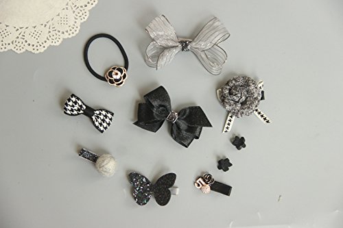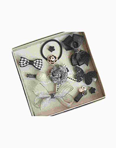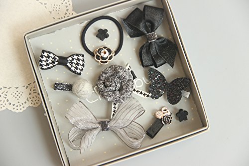 ヘア クリップ 可愛い アクセサリー 髪飾り 前髪 髪留め 10点セット (13.ブラックグレー王冠リボン箱付き)