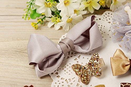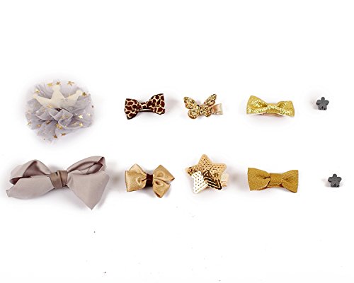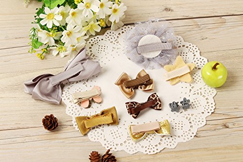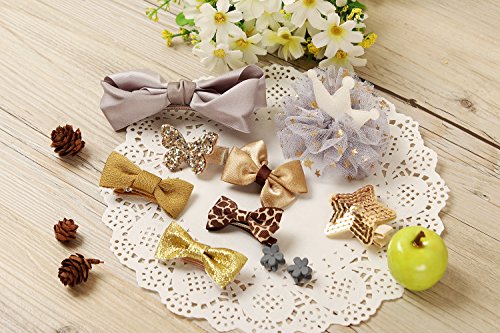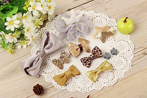 ヘア クリップ 可愛い アクセサリー 髪飾り 前髪 髪留め 10点セット (15.ゴールドグレー王冠リボン箱付き)