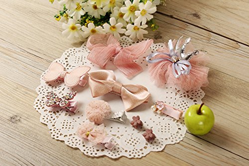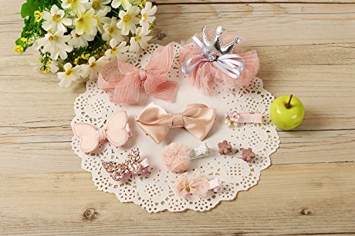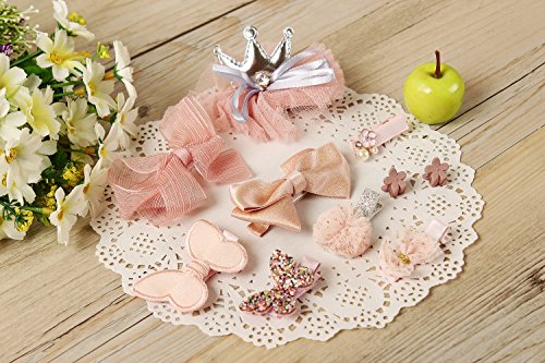 ヘア クリップ 可愛い アクセサリー 髪飾り 前髪 髪留め 10点セット (07.ピンク2星王冠リボン箱付き)