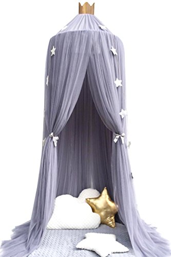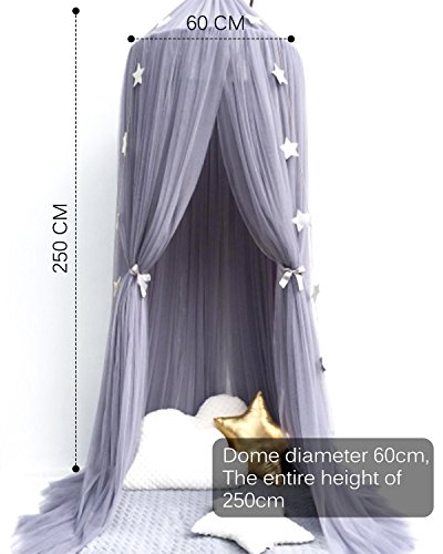 Trcoveric 蚊帳 吊り下げタイプ 虫除けに 子供用天蓋蚊帳 持ち運べる 高さ250cm 収納便利 折り畳み 36*30*6cm 可愛い オシャレ モスキートネット (グレー)