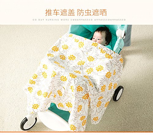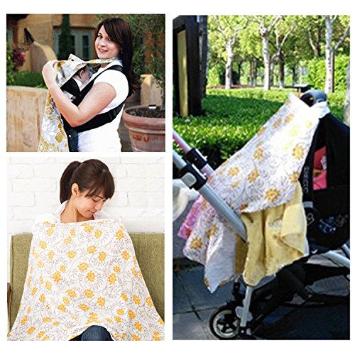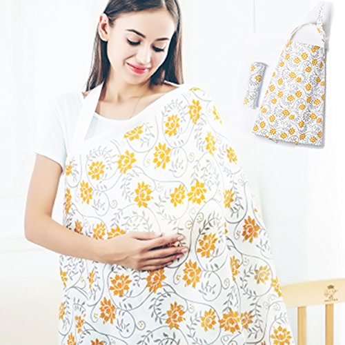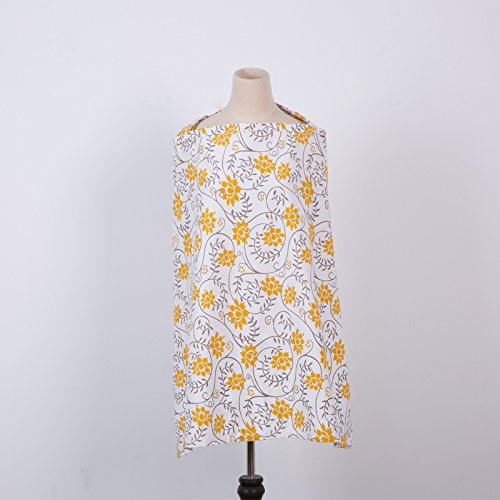 Trcoveric 授乳ケープ 大きめサイズ 上質 コットン生地 360度安心の 調節ヒモ 通気性抜群 多機能 スリム 収納袋 (イエロー)