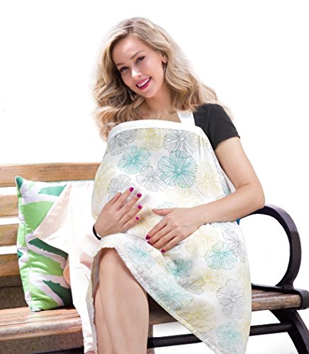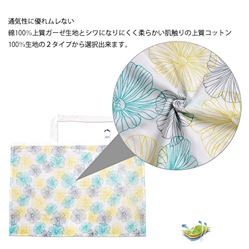 Trcoveric 授乳ケープ 大きめサイズ 上質 コットン生地 360度安心の 調節ヒモ 通気性抜群 多機能 スリム 収納袋 (黄緑)