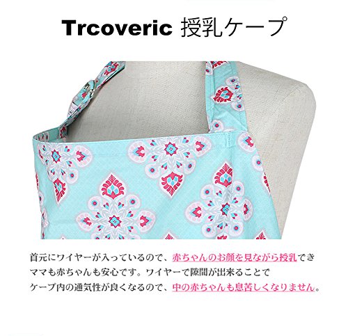 Trcoveric 授乳ケープ 大きめサイズ 上質 コットン生地 360度安心の 調節ヒモ 通気性抜群 多機能 スリム 収納袋 (スノーフレークグリーン)
