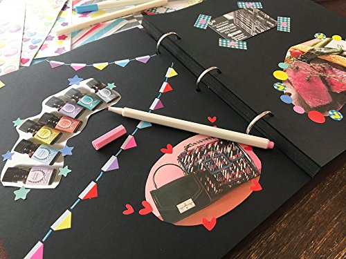 - 中身は黒の台紙が30枚。すぐに製作にとりかかれるようにペン、写真をとめておくフォトコーナーシール付き