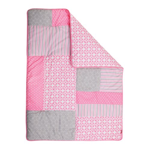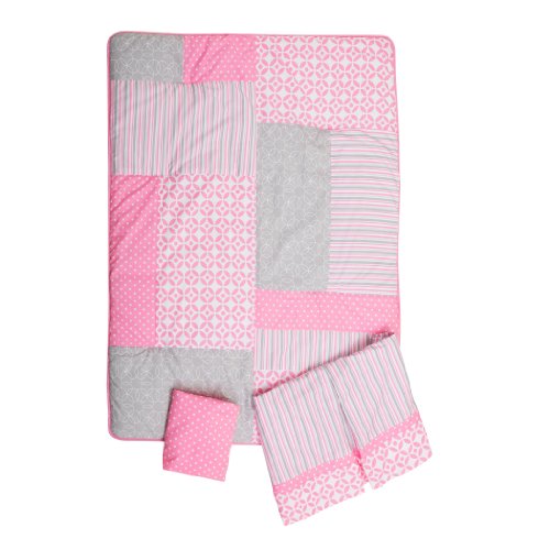 3-piece crib bedding collection;Reversible quilt measures 35 x 45;Fitted crib sheet is soft 100% cotton;Crib sheet fits a standard 52 x 28 crib mattress;Box pleat crib skirt with 15 drop