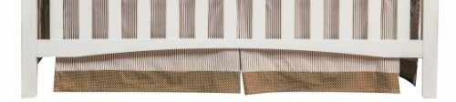 3 piece crib bedding set includes: quilt, fitted crib sheet, crib skirt;Quilt: 35 x 45; Crib sheet: fits a standard 52 x 28 crib mattress; Skirt: 15 drop;Quilt/sheet: 100% cotton; Skirt: 100% cotton, white decking;Machine wash;Coordinating room accessories and cocoa mint crib bumpers sold separately