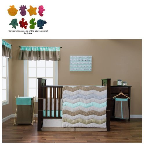 COCOA MINT - 3 PIECE CRIB BEDDING SET & PURCHASECORNER TOY BUNDLE by Trend Lab [並行輸入品]