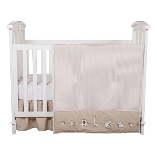 3 Piece Crib Bedding collection;Reversible quilt measures 35 in x 45 in;100% cotton crib sheet fits a standard 28 in x 52 in crib mattress and features 8 inch deep pockets with elastic surrounding the entire opening;Ruffled crib skirt features a 13 inch drop