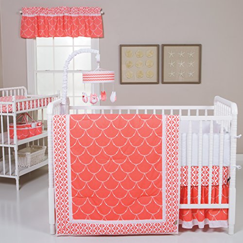 Trend Lab Shell 3 Piece Crib Bedding Set, Coral/White