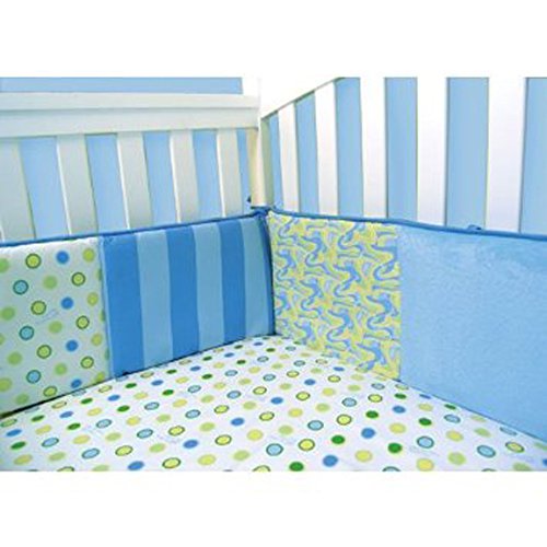 Bundle includes: Quilt: 35 in x 45 in, Sheet: 28 in x 52 in, Skirt: 28 in x 52 in x 10 in;Bumper Set, Changing Pad Cover, Storage Caddy,;Diaper Stacker and 1 Valance