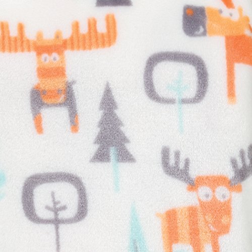 - The changing pad cover features a woodland moose scene scatter print in orange, gray and turquoise blue on a white background.