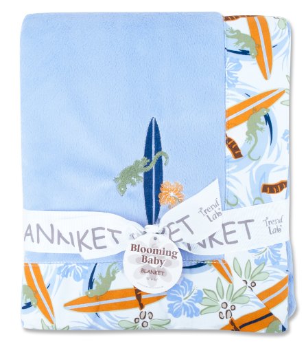 Trend Lab 102143 Receiving Blanket-278C en velours bleu avec planche de surf en percale Trim & Applique Surfboard-Fleur-Lizard