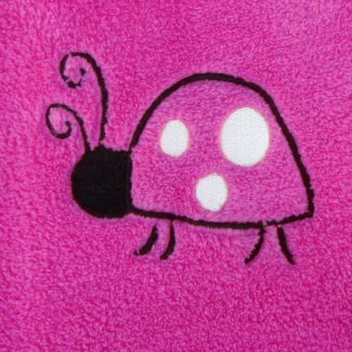 Framed coral fleece receiving blanket;Body: 100% polyester; frame: 100% cotton;Machine washable;Measures 30 x 40;Ladybug embroidery