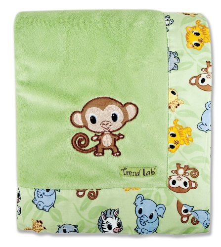 Two layers of soft sage velour;Generous size 30 x 40;Cute scattered animal print frames blanket;Cute monkey embroidered applique in corner