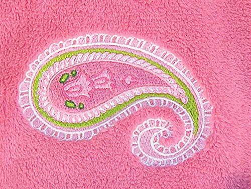 Keep your little one warm and secure with this Paisley Park Framed Receiving Blanket. Soft pink coral fleece is framed by a cotton percale paisley print in bubblegum pink, fuchsia and sage. A paisley embroidered applique in the corner adds the finishing touch.