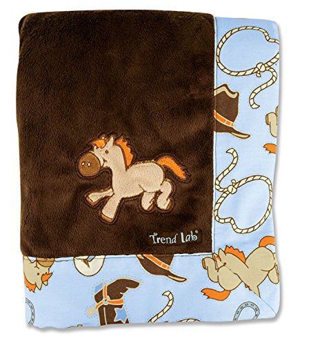 Color:Framed Cowboy Baby Product Description Keep your little one warm and secure with this Cowboy Baby Framed Blanket. Soft chocolate brown velour is framed by a cotton percale cowboy themed scatter print in powder blue, dusk blue, chocolate brown, and desert sand with hints of cream and orange. An embroidered pony in the corner adds the finishing touch. From the Manufacturer Keep your little one warm and secure with this Cowboy Baby Framed Blanket by Trend Lab. Soft chocolate brown velour is framed by a cotton percale cowboy themed scatter print in powder blue, dusk blue, chocolate brown, and desert sand with hints of cream and orange. An embroidered pony in the corner adds the finishing touch. Blanket measures 30' x 40'.