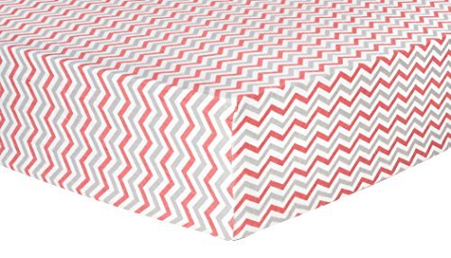 Trend Lab Chevron Deluxe Flannel Fitted Crib Sheet, Coral and Gray