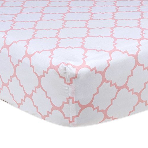 100% Cotton, Rose Pink & Stylish, White Quatrefoil Print Fitted Crib Sheet, 28 W x 52 L by Trend Lab