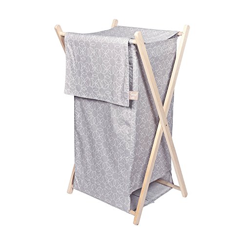 Trend Lab's Gray and White Circles Hamper Set is a decorative solution for quick clean up. The opal gray and white overlapping lattice circles print outer flap easily attaches to the collapsible pine wood frame. Machine washable inner mesh liner is removable making the transport of laundry effortless. Assembled hamper measures 15 in x 27 in x 15 in. Coordinates with the Circles Gray, Florence and Monaco collections by Trend Lab.