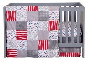 Bundle includes: Quilt: 35 in x 45 in, Sheet: 28 in x 52 in, Skirt: 28 in x 52 in x 10 in, and Bumper Set