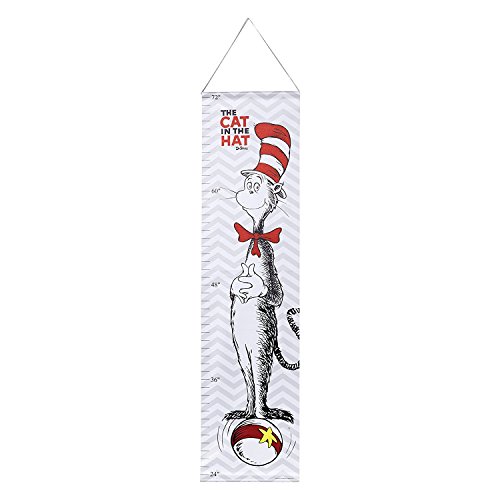 Dr. Seuss growth charts by trend lab offer a whimsical way to track your little one's growth! The growth chart features dr. Seuss' classic cat in the hat printed on a gray and white chevron background. The color palette is delightful featuring barn red, Paloma gray, black and white. Measure your child's progress up to 72 inches. Ribbon for hanging attached to chart. Product sold under license from dr. Seuss enterprises, l.p. This is not a toy. Do not leave child unattended. Adult supervision required.