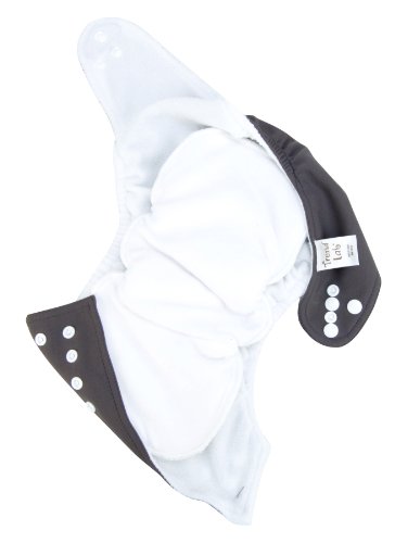 One size, all in one diapers features a snap adjustable outer shell;Waterproof outer shell is lined with soft fleece;Three rows of snaps provide the ultimate adjustability;Leg and back openings are elasticized for a contoured fit