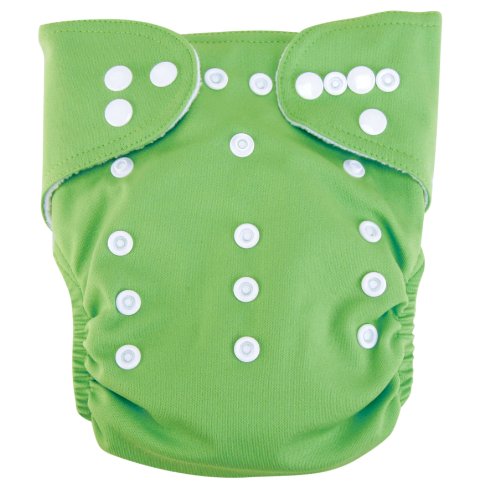 One size, all in one diapers features a snap adjustable outer shell;Waterproof outer shell is lined with soft fleece;Three rows of snaps provide the ultimate adjustability;Leg and back openings are elasticized for a contoured fit