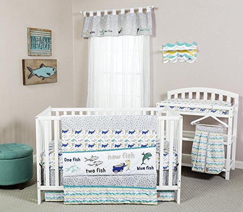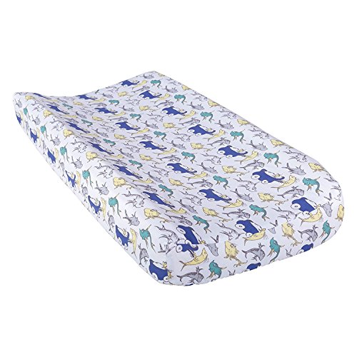 Color:Blue, Green and Gray Trend Lab's Changing Pad Covers are both stylish and comfortable. The soft printed 100% cotton cover is fully elasticized offering a sleek tailored fit to contoured changing pads. The Dr. Seuss New Fish Changing Pad Cover features Dr. Seuss Fish icons printed in dusty navy blue, wasabi green, golden mist yellow, glacier gray and white. Cover fits a 16 in x 32 in standard changing pad. Coordinates with the Dr. Seuss New Fish collection by Trend Lab. Please adhere to JPMA's Safe Infant Bedding Practices. Product sold under license from Dr. Seuss Enterprises, L.P.