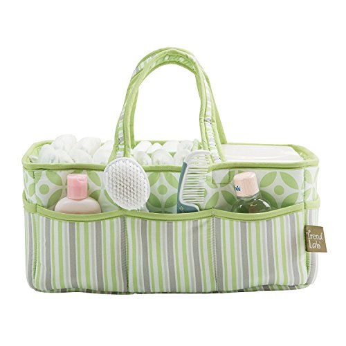 Color:Green Add organization to any area of your home with this Lauren portable Storage Caddy. This lightly padded caddy features a variegated stripe print in celery green, shades of opal gray and white on the outside with a coordinating white and celery green dot print on the inside and is finished with a celery green and white circular lattice print trim. Caddy has 8 outer pockets and a removable ツ・Tツ・ separator for maximum versatility. Keep diapers, wipes and other necessities tidy while traveling from room to room. Caddy also functions as an organizer for crafts, picnics, pet supplies, etc.