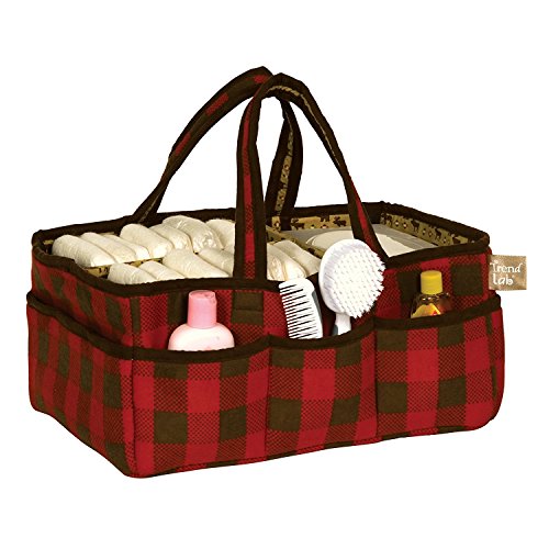 Color:Red/Tan Add organization to any area of your home with this Northwoods portable Storage Caddy by Trend Lab. This lightly padded caddy features a deep red and chocolate brown buffalo check on the outside with a coordinating outdoor motif print in oak, flax, chocolate brown, deep red and clover green on the inside and is finished with a brown ultrasuede trim. Caddy has 8 outer pockets and a removable 'T' separator for maximum versatility. Keep diapers, wipes and other necessities tidy while traveling from room to room. Caddy also functions as an organizer for crafts, picnics, pet supplies, etc. Measures 13' x 9' x 7'. Coordinates with the Northwoods collection by Trend Lab.