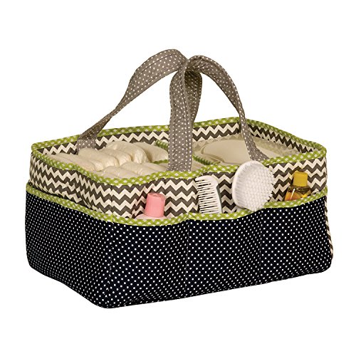 Color:Perfectly Preppy Add organization to any area of your home with this Perfectly Preppy portable Storage Caddy by Trend Lab. This lightly padded caddy features a navy blue with white mini dot print base with a gray and white chevron print top. Gray with white mini dot print handles and a sweet pea green and white woven gingham trim add the finishing touches. Caddy has 8 outer pockets and a removable 'T' separator for maximum versatility. Keep diapers, wipes and other necessities tidy while traveling from room to room. Caddy also functions as an organizer for crafts, picnics, pet supplies, etc. Measures 13' x 9' x 7'. Coordinates with the Perfectly Preppy collection by Trend Lab.