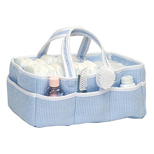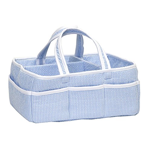 Size:Pack of 1 Add organization to any area of your home with this blue Gingham Seersucker portable storage caddy by Trend Lab. This lightly padded caddy features a classic blue and white gingham seersucker body and is finished with a white trim. Caddy has 8 outer pockets and a removable 'T' separator for maximum versatility. Keep diapers, wipes and other necessities tidy while traveling from room to room. Caddy also functions as an organizer for crafts, picnics, pet supplies, etc. Measures 13' x 9' x 7'.