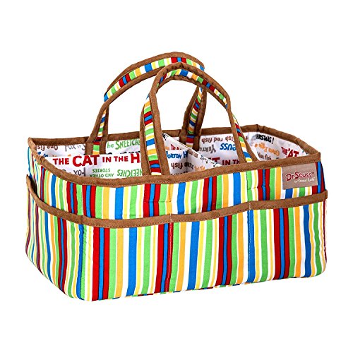 Size:Pack of 1 Add organization to any area of your home with this Dr. Seuss by Trend Lab alphabet seuss portable storage caddy. This lightly padded caddy features a charming stripe print in multicolored palette of gray, tan, yellow, marigold, ribbon red, grass green and shades of blue with black and white accents with a coordinating Dr. Seuss multi-book titles typography print on the inside and is finished with a brown ultra suede trim. Caddy has 8 outer pockets and a removable T separator for maximum versatility. Keep diapers, wipes and other necessities tidy while traveling from room to room. Caddy also functions as an organizer for crafts, picnics, pet supplies, etc. Measures 12' x 6' x 8'. Coordinates with Dr. Seuss by Trend Lab alphabet seuss collection. Product sold under license from Dr. Seuss enterprises, L.P.