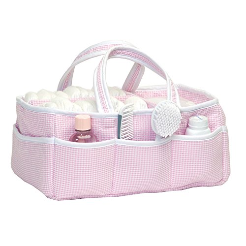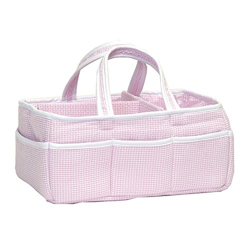 Add organization to any area of your home with this Pink Gingham Seersucker portable storage caddy by Trend Lab. This lightly padded caddy features a classic pink and white gingham seersucker body and is finished with a white trim. Caddy has 8 outer pockets and a removable 'T' separator for maximum versatility. Keep diapers, wipes and other necessities tidy while traveling from room to room. Caddy also functions as an organizer for crafts, picnics, pet supplies, etc. Measures 13' x 9' x 7'.