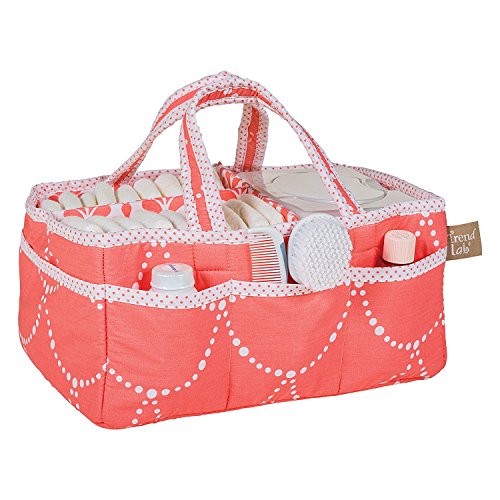 Color:Coral/White Add organization to any area of your home with this portable Shell Storage Caddy by Trend Lab. Perfect for dressers and changing stations, this lightly padded caddy has 8 outer pockets and a removable 'T' separator for maximum versatility. The body features coral and white scallop-arches of pearly strands print with art deco floral print lining and mini dot print trim and handles. Keep diapers, wipes and other necessities tidy while traveling from room to room. Caddy also functions as an organizer for crafts, picnics, pet supplies, etc. Measures 12 in x 6 in x 8 in. Coordinates with the Shell collection by Trend Lab.