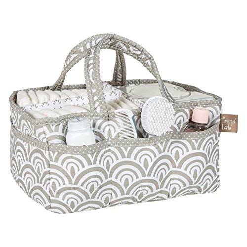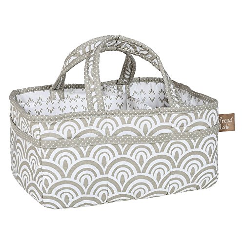 Color:Gray/White Add organization to any area of your home with this portable Art Deco Storage Caddy by Trend Lab. Perfect for dressers and changing stations, this lightly padded caddy has 8 outer pockets and a removable 'T' separator for maximum versatility. The body features Paloma gray and white scallop print with burst print lining and mini dot trim and handles. Keep diapers, wipes and other necessities tidy while traveling from room to room. Caddy also functions as an organizer for crafts, picnics, pet supplies, etc. Measures 12 in x 6 in x 8 in. Coordinates with the Art Deco collection by Trend Lab.